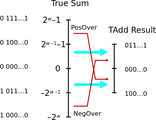 - Mathematical addition + possible subtraction of 2w (on overflow)