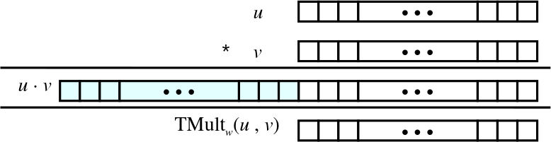- TMultw(u, v) = U2Tw(u * v mod 2w)