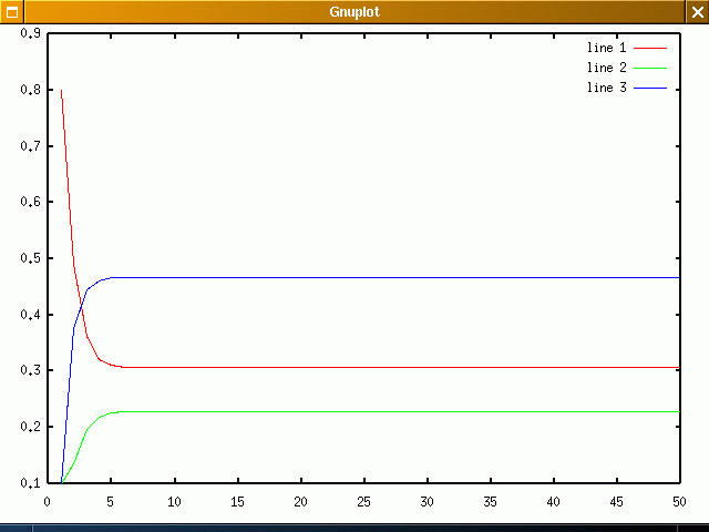 octave> markov3(0.55,0.4,0.1,0.1,0.25,0.3,0.1,0.4); # same P, different x0