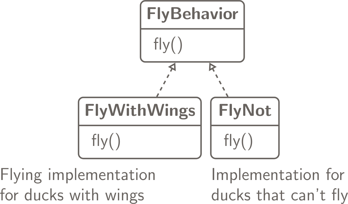 FlyBehavior flyBehavior = () -> System.out.println("Winged Flying");Given the FlyBehavior interface: