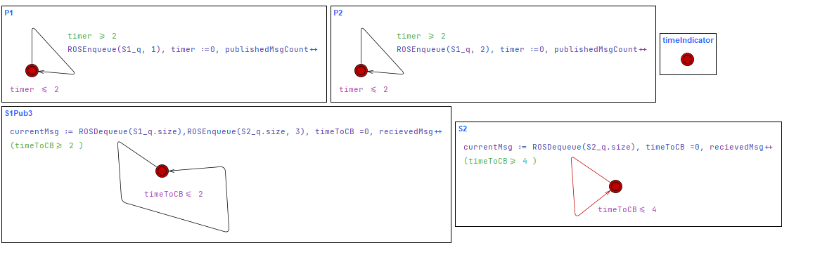Formal modeling of ROS 2 publisher–subscriber communication using UPPAAL to ensure safety, liveness, and reliable message delivery in robotic systems.